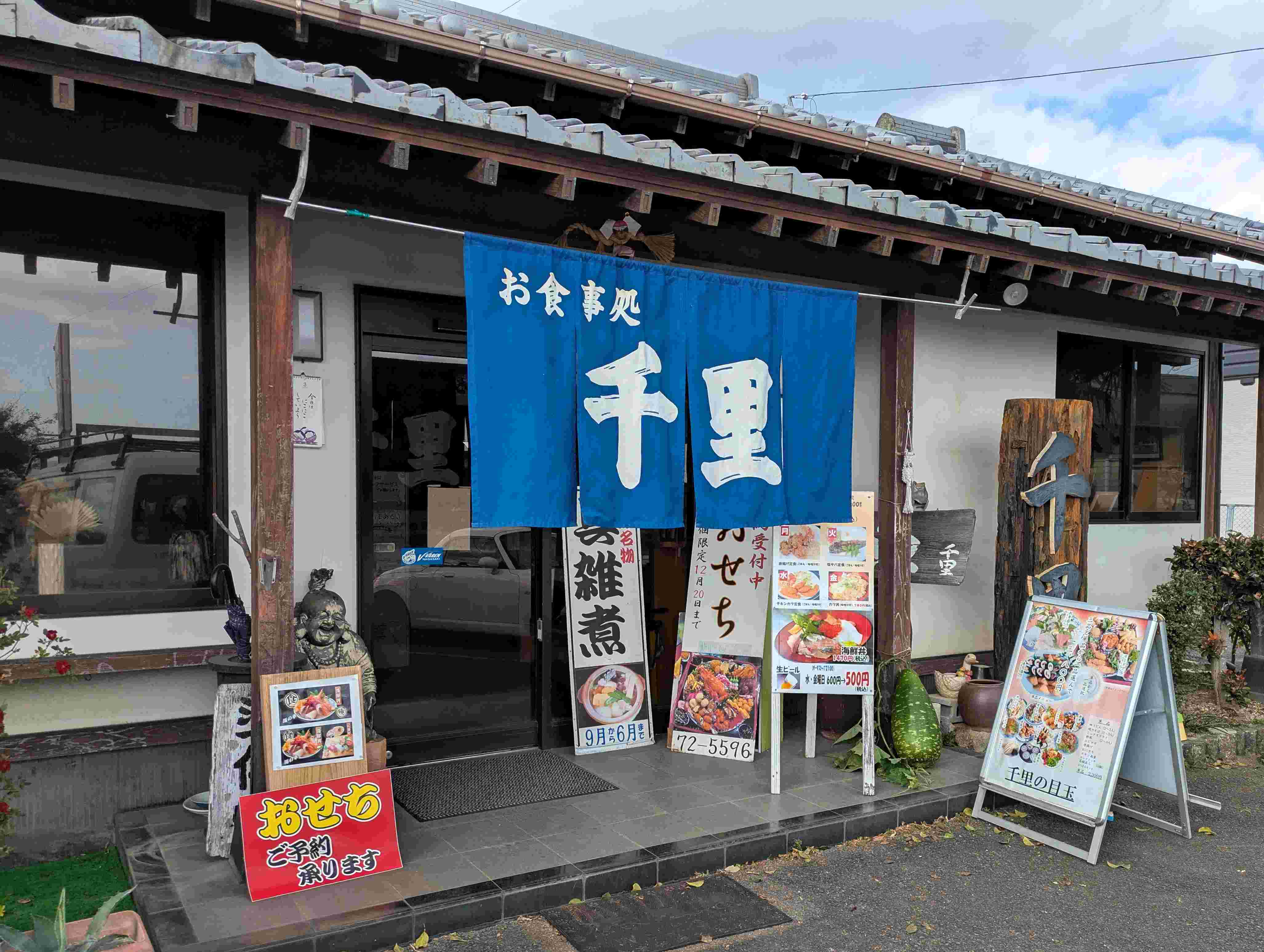 2025年12月08日 具雑煮紀行! 千里食堂@長崎県南島原市 千里食堂 長崎県南島原市深江町丁5619朝から平成町多目的広場に居て、お昼前に訪飯(^^)/悩みます・・・身体が冷え切っていて・・・具雑煮セット 1200円着丼(^^)/熱々の出汁はとても美味しく冷え切った身体に沁みます( ◠‿◠ ) 具材は色々入っていて食べ応えがあって美味しいです^^お餅が3個入ってました(^^)/いなりは普通に美味しかったです(#^.^#)とても美味しく満腹大満足なセットでした(^^♪ 「定食・ランチ」カテゴリの最新記事 タグ :#千里食堂#定食屋#居酒屋#具雑煮セット#具雑煮#いなり寿司#熱々#平成町多目的広場#南島原市#長崎B級グルメ コメント コメント一覧 (2) 1. 明美 2025年12月13日 19:48 千里はエビフライ定食がお薦めです!デカい海老が3尾エビフライだけでお腹いっぱいに 0 長崎B級グルメ紀行! がしました 2. 長崎B級グルメ! 2025年12月13日 22:08 明美さん こんばんは^^ 情報ありがとうございます。 来週の土曜日に島原に行くんで、開店時間に間に合えば行ってみたいと思います! 0 長崎B級グルメ紀行! がしました コメントフォーム 名前 コメント 記事の評価 リセット リセット 顔 星 情報を記憶 コメントを投稿する