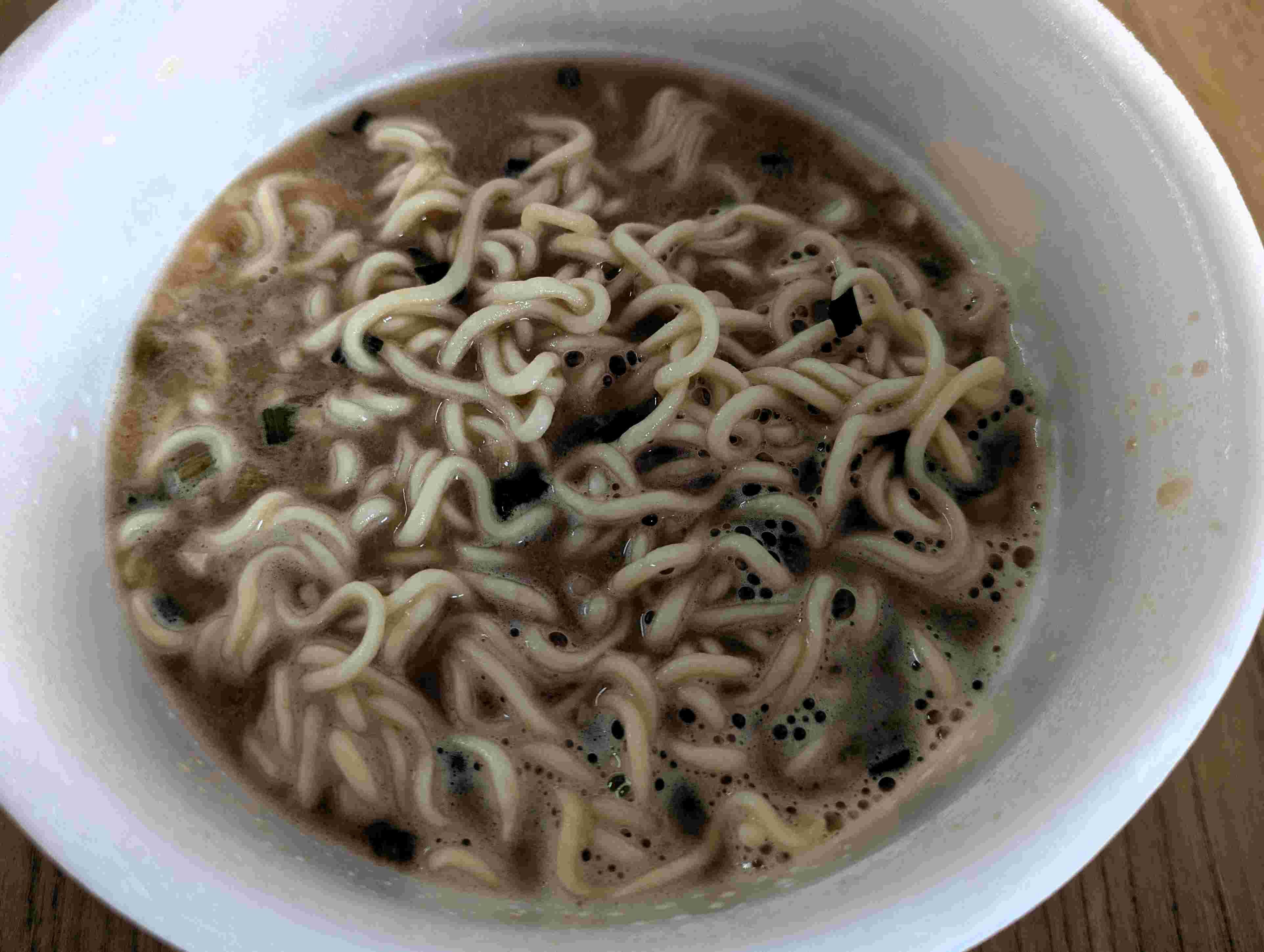 2025年11月04日 カップ麺紀行! カップヌードル魚豚 カップヌードル魚豚何も予定が入ってない休日・・・何か食べに行こうかと思うもお家でまったりと・・・だいぶ前に買ってたこれを食べようと^^お湯を入れて3分待ちます・・・付属の魚粉を入れてよく混ぜていただきます(^^)/ドロッとした濃厚なスープは、魚介の出汁を感じます(^^)/ちょっと濃い感じがするけどとても美味しいです( ◠‿◠ ) 麺は普通のカップヌードルって感じで普通に美味しく(#^.^#)とても美味しく満腹大満足な一杯でした(^^♪リピしたく、見つけたらまた買います! タグ :#カップヌードル#魚豚#魚介豚骨#カップ麺#リピ確定#日清#長崎市#長崎B級グルメ
