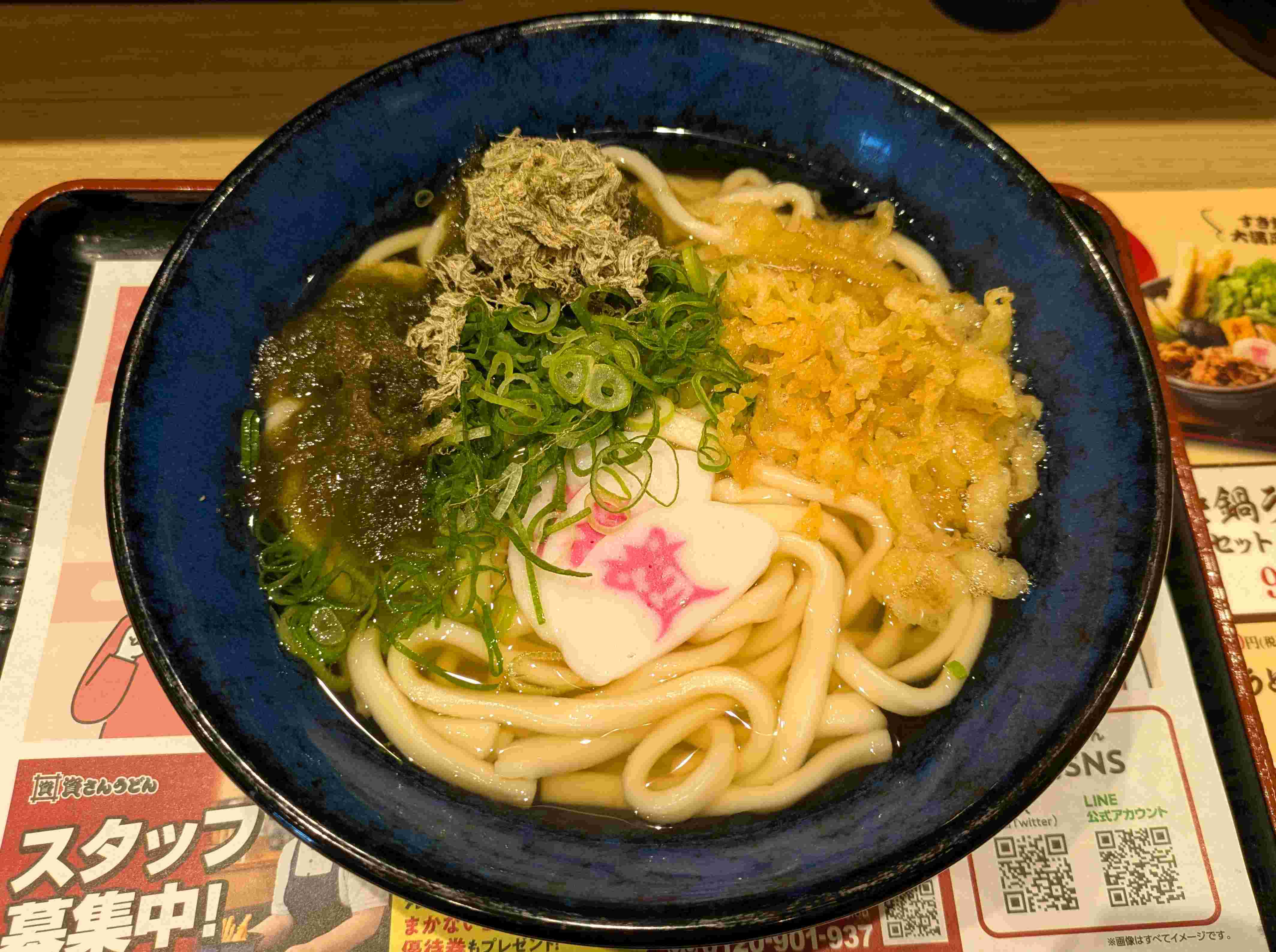 ミニ肉うどんに、天かすを投入していただきます!(^^)!