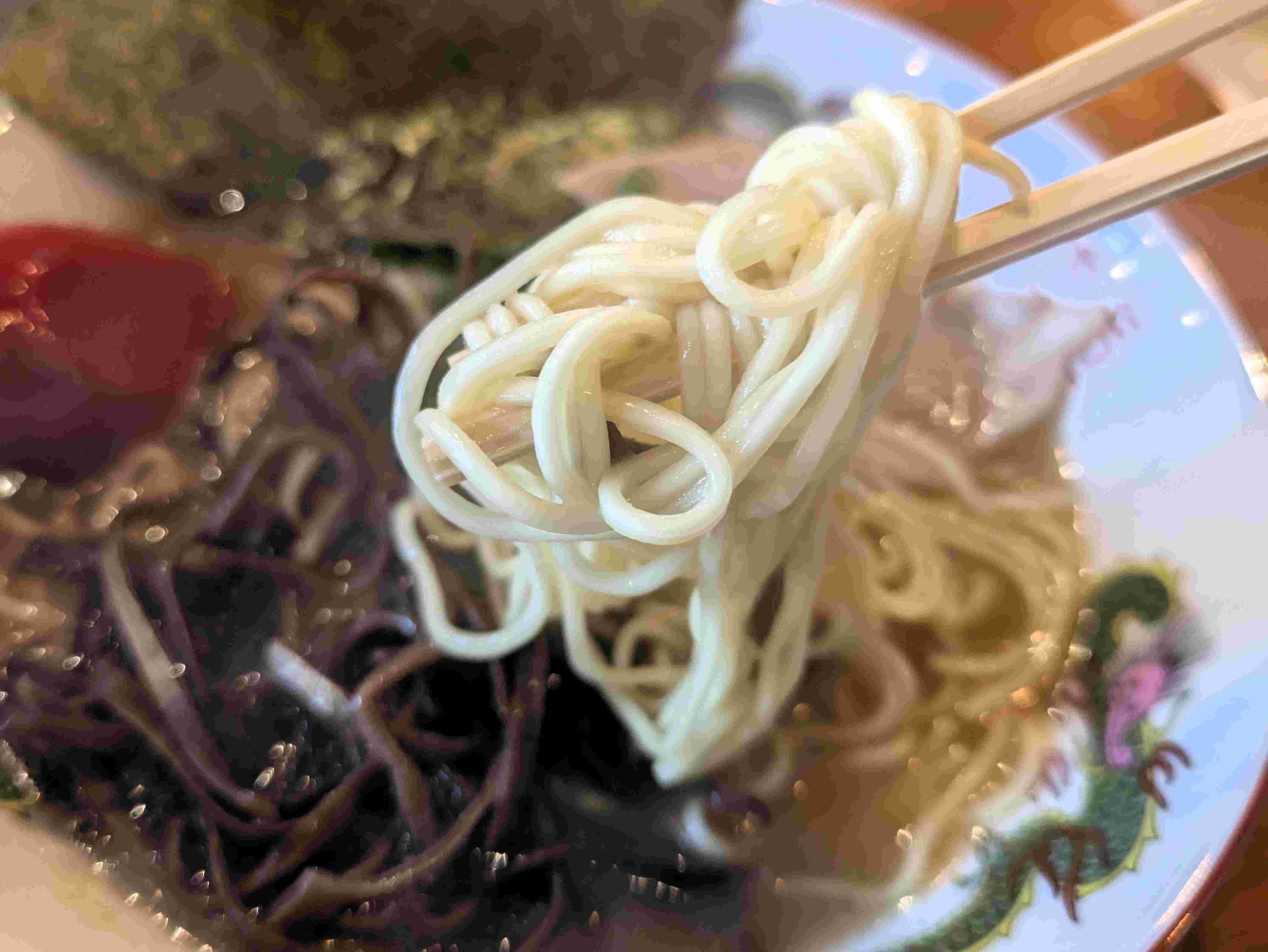 ストレートな細麺は、ど豚骨によく合って美味しいです(#^.^#)