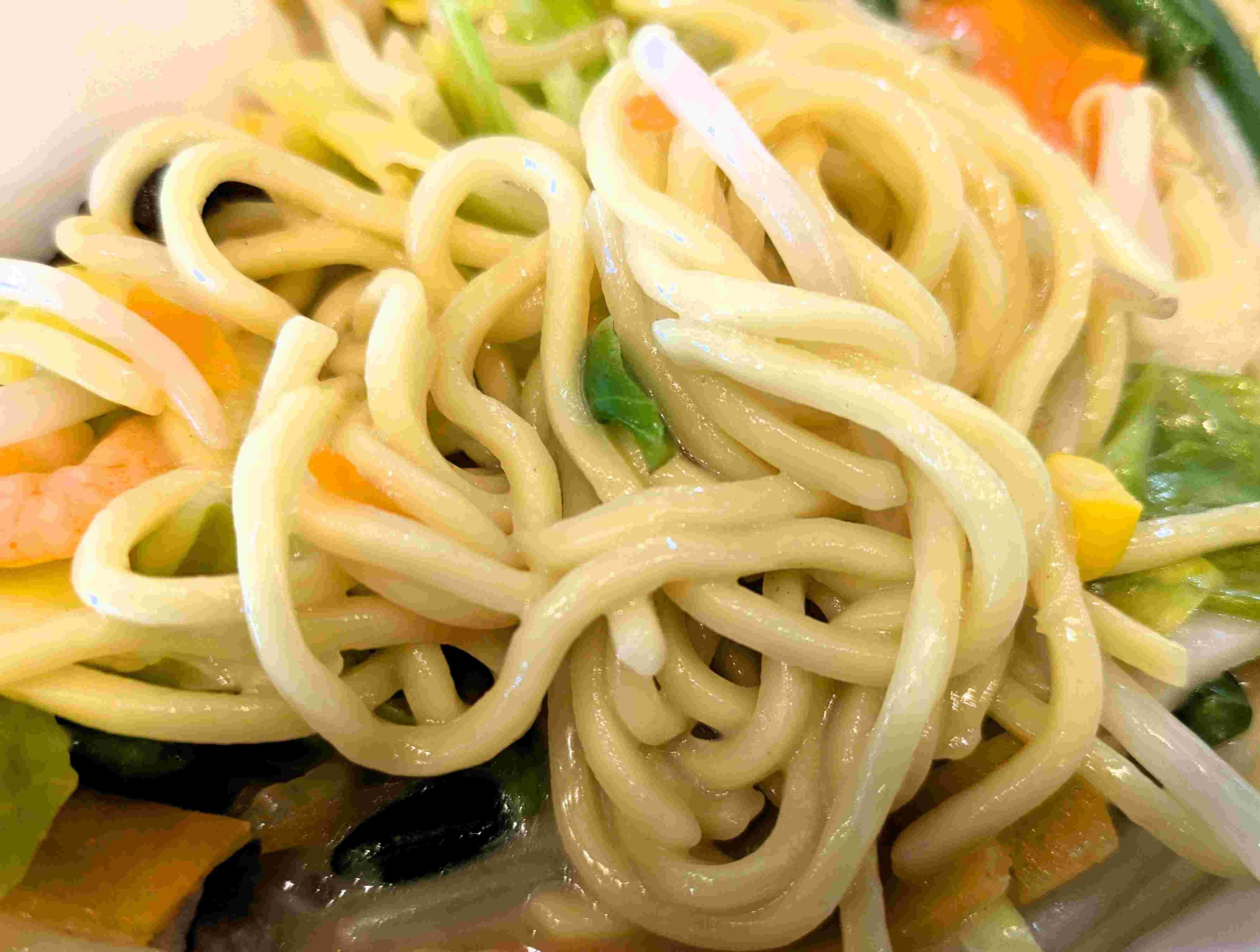 角ばった平打ち麺は、こってりスープに合って美味しく(*^^)v