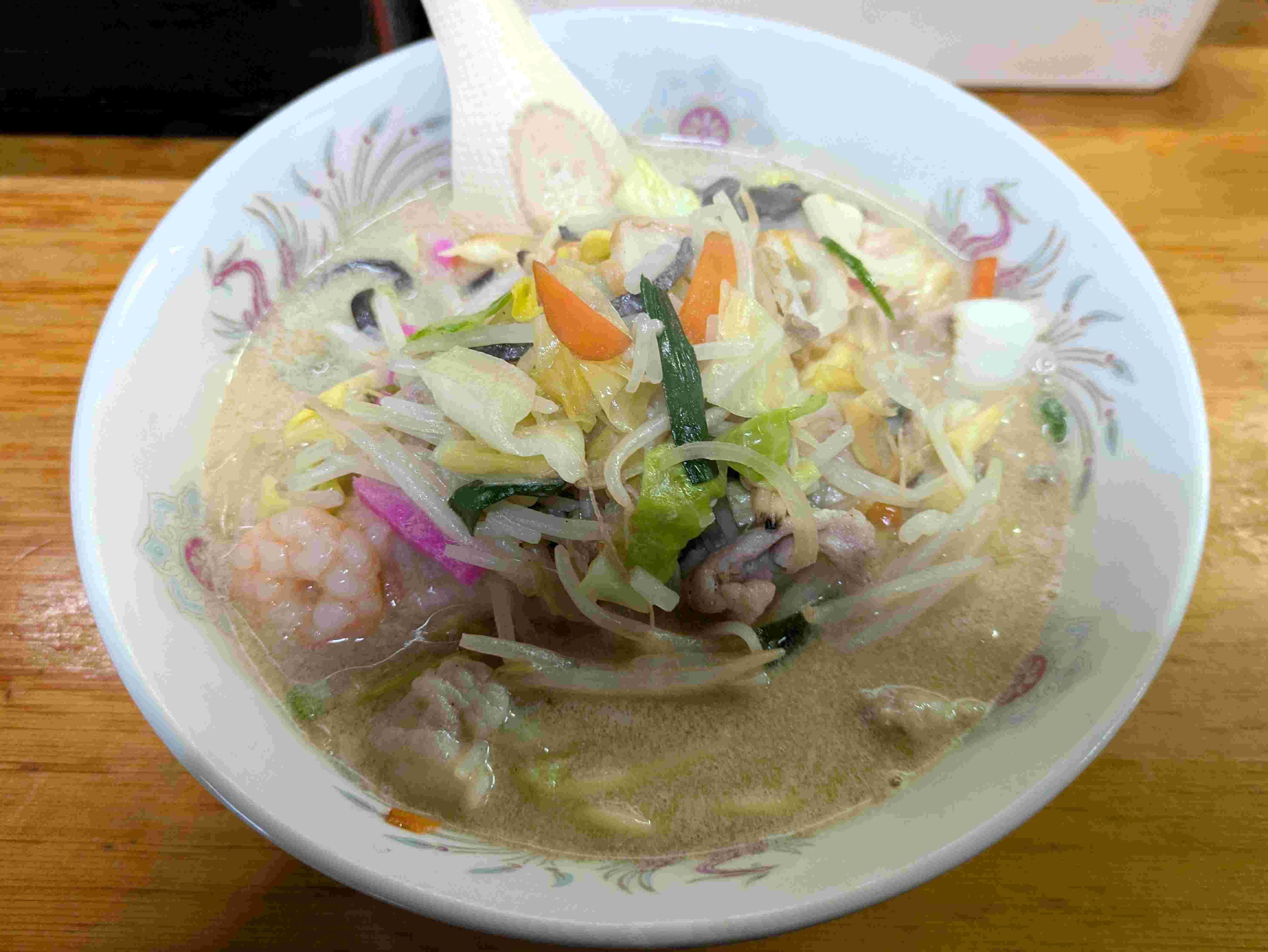 2024年11月22日 ちゃんぽん紀行! 味処こころ@長崎市 味処こころ 長崎市万才町1-6 伊藤ビル1Fちゃんぽんの口になってて・・・どこに行こうかと悩んだ末にこのお店へ!一応悩みます・・・店主さんが数日前に、TVに出られたそうで・・・KTNに焼きそばを出前して、西川きよし師匠と共演したそうで・・・緊張したって言われてました!ちゃんぽん 750円魚介と野菜がたっぷり入ったちゃんぽんです(^^)/湯気でレンズが曇りました・・・汗クリーミーでコクがあるスープはとても美味し( ◠‿◠ ) ぷりぷりの麺はスープの味を吸って美味しくて^^たっぷり野菜でプラマイゼロになりました(*^^)vとても美味しく満腹大満足な一杯でした(^^♪ タグ :#こころ#居酒屋#ちゃんぽん#皿うどん#定食#昼美味しいお店は夜も美味しい#魚介たっぷり#野菜たっぷり#長崎市#長崎B級グルメ